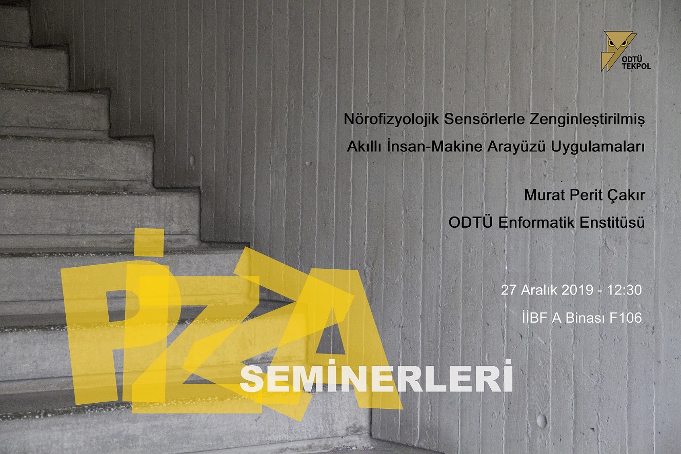 "Nörofizyolojik Sensörlerle Zenginleştirilmiş Akıllı İnsan-Makine Arayüzü Uygulamaları" başlıklı seminer, ODTÜ Enformatik Enstitüsü'nden Murat Perit Çakır tarafından sunulacaktır.