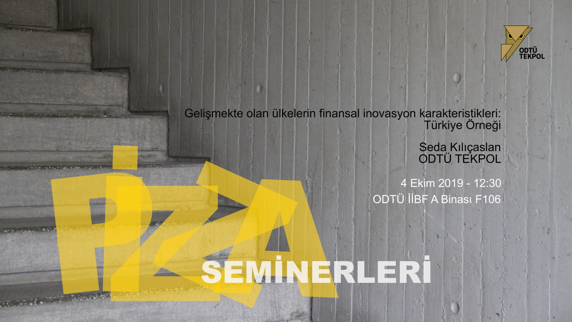 "Gelişmekte olan ülkelerin finansal inovasyon karakteristikleri: Türkiye Örneği" başlıklı seminer, ODTÜ TEKPOL'den Seda Kılıçaslan tarafından sunulacaktır.