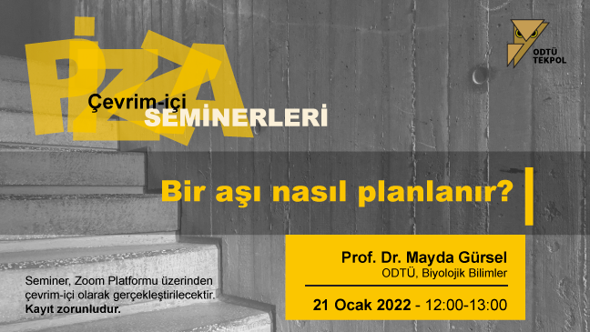 “Bir aşı nasıl planlanır?” başlıklı seminer, ODTÜ Biyolojik Bilimler Bölümü’nden Prof. Dr. Mayda Gürsel tarafından sunulacaktır.